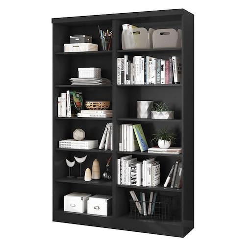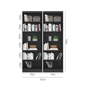 Conjunto 2 Estantes Livreiro Multiuso 1404 Preto Fosco - Qmovi Preto Fosco Conjunto 2 Estantes Livreiro Multiuso 1404 - Qmovi Com um design contemporâneo, o Livreiro Multiuso é ideal para compor com a decoração de diversos ambientes, levando funcionalidade e praticidade na hora de organizar e decorar o seu espaço. Suas prateleiras são móveis e podem ser posicionadas conforme sua necessidade, sendo ideal para livros e decorações. ESPECIFICAÇÕES: - Estrutura em MDP - Pintura UV atóxica - 10 Prateleiras - Sistema antitombamento - Móvel multifuncional - Ideal para livros e objetos decorativos