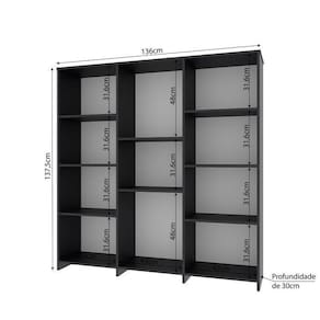 Medidas (cada estante, AxLxP): 137,5x136x30 cm. Produto Montado: Sim Altura do Conjunto: 137.5 cm Ambiente Principal: Escritório codigo_ean: 7909903199923 Complexidade da Montagem: Média: pode ser montado por mais de uma pessoa e/ou necessite de maior conhecimento para montagem Cor: Preto Perfect Touch Informação Complementar: 2x Estante Livreiro Multiuso 7 Prateleiras 11 Nichos London Preto Perfect Touch Largura: 136 Altura: 137.5 Peso: 34 Profundidade: 30 Necessita Montagem: Sim