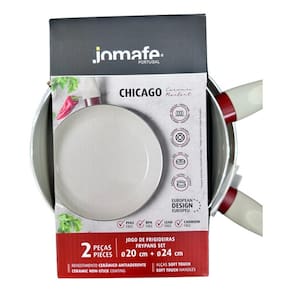 Produto: Conjunto de Frigideiras Marca: Jomafe Modelo: Chilli Tamanhos: Frigideira 1: 20cm (Capacidade: 0,95L) Frigideira 2: 24cm (Capacidade: 1,5L) Revestimento: Cerâmico Antiaderente Alças: Soft Touch para maior conforto e segurança Benefícios: