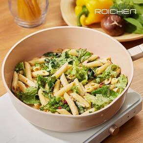 1 Frigideira Rasa Roichen Cerâmica Antiaderente Indução 28cm 3,8L Rosa