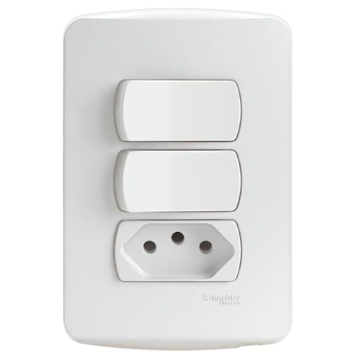 Conjunto 2 Interruptores Simples + 1 Tomada 2 Pinos + Terra 10 Amperes 250 Volts - S3B69050 - SCHNEIDER