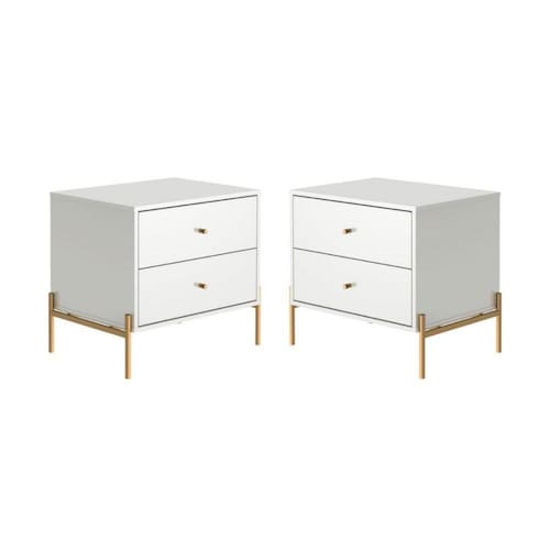 Amplo Espaço de Armazenamento:Cada mesa possui 2 gavetas espaçosas com puxadores em Zamac, ideais para organizar objetos de uso diário com praticidade. O tampo livre é perfeito para apoiar luminárias, celulares, livros e itens decorativos.