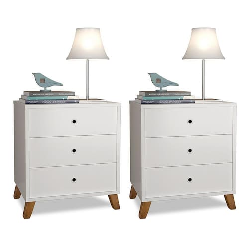 Conjunto 2 Mesas De Cabeceira 3 Gavetas Branco