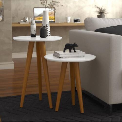 Conjunto 2 Mesas Laterais Pés Palito em Madeira 4202 Sala Branco