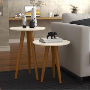 O Conjunto 2 Mesas 4301 Pés Palito Sala traz um design clássico e funcional para sua sala. As mesas com pés palito são ideais para quem busca simplicidade e elegância, além de serem versáteis e perfeitas para apoiar objetos decorativos ou realizar pequenas refeições.