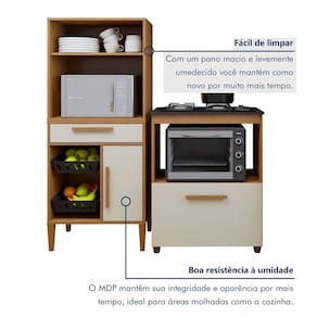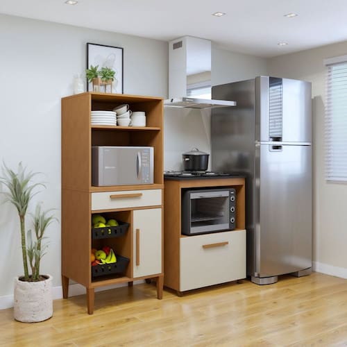 Se você busca uma cozinha completa que une praticidade, organização e design, essa é a escolha perfeita! Com uma fruteira com nichos, você tem espaço de sobra para armazenar frutas e outros itens essenciais do dia a dia. Com design moderno, o balcão multiuso para cozinha é perfeito para quem busca espaço e ainda dar um Up na decoração. Pensado para acomodar seu cooktop com segurança, ele ainda oferece um nicho perfeito para micro-ondas, forno elétrico ou outros eletrodomésticos essenciais.