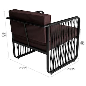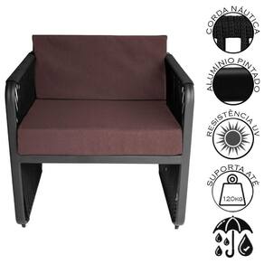 Conjunto 2 Poltronas área Externa Corda Náutica Santiago Preto/marrom A Poltrona Santiago e perfeita para areas gourmet, varandas, churrasqueiras e espacos externos. Produzida artesanalmente, sua estrutura em aluminio garante leveza e resistencia, enquanto os acabamentos em corda nautica adicionam charme e sofisticacao. Seu assento estofado conta com tecido impermeavel, proporcionando ainda mais comodidade e praticidade no dia a dia. Caracteristicas do Produto: Material: Aluminio Material do Assento: Tecido Impermeavel Material do Encosto: Tecido Impermeavel Acabamento: Corda Nautica Tipo de Assento: Fixo Tipo de Encosto: Fixo Possui Apoio de Braco? Sim Peso suportado(kg): 150kg