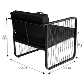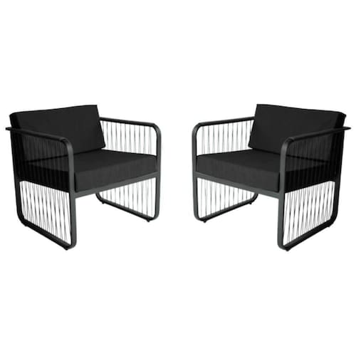 Conjunto 2 Poltronas área Externa Fibra Sintética Santiago Preto/preto O Conjunto 2 Poltronas Santiago para Area Externa sao a escolha ideal para quem busca conforto, durabilidade e elegancia em ambientes ao ar livre. Com estrutura em aluminio e acabamento em fibra sintetica. O assento estofado com tecido impermeavel proporciona conforto e praticidade, tornando o uso ainda mais agradavel. Produzidas de forma artesanal, combinam sofisticacao e exclusividade no design. Ideais para areas gourmet, areas externas, churrasqueiras, ediculas e outros espacos que exigem um toque especial de charme e aconchego.