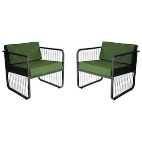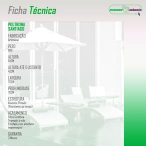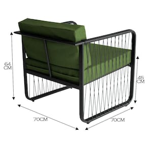 Conjunto 2 Poltronas área Externa Fibra Sintética Santiago Preto/verde O Conjunto 2 Poltronas Santiago para Area Externa sao a escolha ideal para quem busca conforto, durabilidade e elegancia em ambientes ao ar livre. Com estrutura em aluminio e acabamento em fibra sintetica. O assento estofado com tecido impermeavel proporciona conforto e praticidade, tornando o uso ainda mais agradavel. Produzidas de forma artesanal, combinam sofisticacao e exclusividade no design. Ideais para areas gourmet, areas externas, churrasqueiras, ediculas e outros espacos que exigem um toque especial de charme e aconchego.