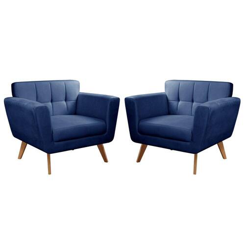 Conjunto 2 Poltronas Bruna Moderna Decoração Sala Recepção Bella Decor - Azul Marinho