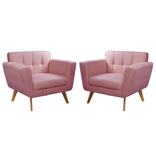 Conjunto 2 Poltronas Bruna Moderna Decoração Sala Recepção Bella Decor - Rosa