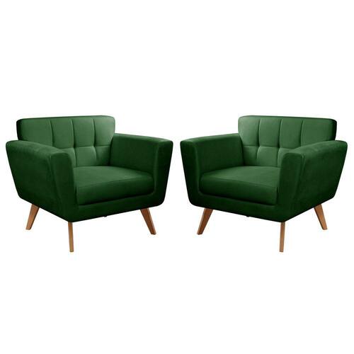 Conjunto 2 Poltronas Bruna Moderna Decoração Sala Recepção Bella Decor - Verde Musgo