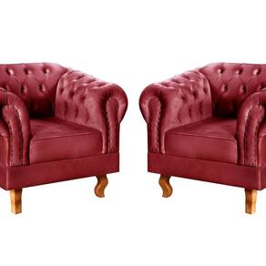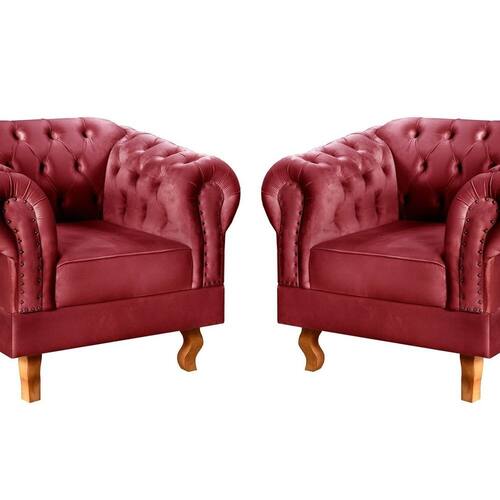 Conjunto 2 Poltronas Chesterfield Dom Pedro Decoração Sala Recepção Retrô Bordô - Vermelho