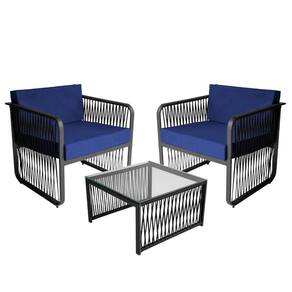 Conjunto 2 Poltronas E Mesa Centro Corda Náutica Santiago Preto/azul Leve conforto e sofisticacao para sua area externa com o Conjunto Santiago, composto por 2 Poltronas e 1 mesa de centro. Seu design moderno e acabamento artesanal garantem elegancia e durabilidade, tornando qualquer espaco mais acolhedor e funcional. Produzido em aluminio resistente, acabamento artesanal em corda nautica e tampo de vidro elegante. Este conjunto e ideal para compor espacos externos com charme e aconchego.