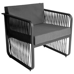 Conjunto 2 Poltronas E Mesa Centro Corda Náutica Santiago Preto/cinza Leve conforto e sofisticacao para sua area externa com o Conjunto Santiago, composto por 2 Poltronas e 1 mesa de centro. Seu design moderno e acabamento artesanal garantem elegancia e durabilidade, tornando qualquer espaco mais acolhedor e funcional. Produzido em aluminio resistente, acabamento artesanal em corda nautica e tampo de vidro elegante. Este conjunto e ideal para compor espacos externos com charme e aconchego.