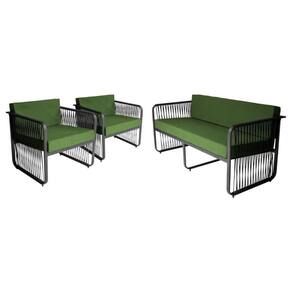 Conjunto 2 Poltronas E Namoradeira Corda Náutica Santiago Preto/verde O Conjunto Santiago foi desenvolvido para oferecer um toque de sofisticacao e conforto a sua area externa. Com estrutura em aluminio e acabamento em corda nautica, este conjunto e ideal para quem deseja unir durabilidade e elegancia. O assento e encosto macio e confortavel com tecido impermeavel, tornando-o perfeito para espacos como areas gourmet, varandas, areas de churrasqueira e ediculas.