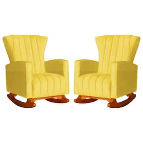 Conjunto 2 Poltronas Estofadas de Balanço Melinda Suede Amarelo - LM DECOR