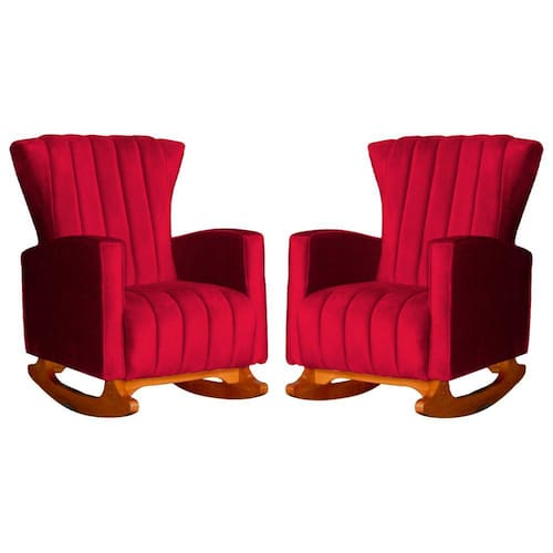 Conjunto 2 Poltronas Estofadas de Balanço Melinda Veludo Vermelho - LM DECOR