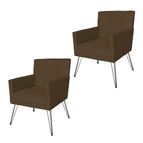 Conjunto 2 Poltronas Estofadas Para Clínica Pés de Ferro Onix Corano Marrom - LM DECOR