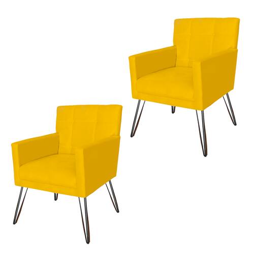 Conjunto 2 Poltronas Estofadas Para Clínica Pés de Ferro Onix Suede Amarelo - LM DECOR