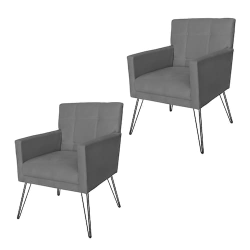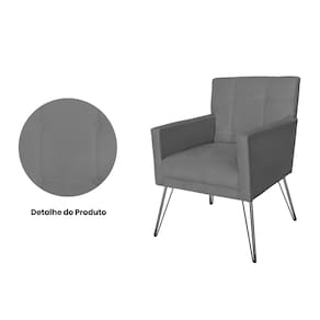 Conjunto 2 Poltronas Estofadas Para Clínica Pés de Ferro Onix Suede Cinza - LM DECOR