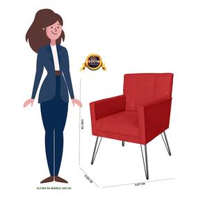 Conjunto 2 Poltronas Estofadas Para Clínica Pés de Ferro Onix Suede Vermelho - LM DECOR