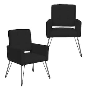 Conjunto 2 Poltronas Estofadas Para Consultório Pés de Ferro Camila Corano Preto - LM DECOR