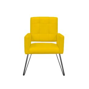 Conjunto 2 Poltronas Estofadas Para Consultório Pés de Ferro Camila Suede Amarelo - LM DECOR
