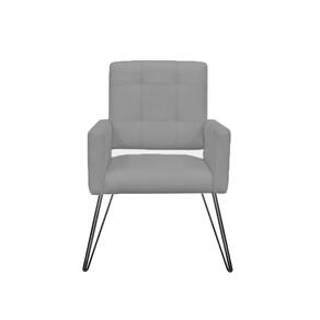 Conjunto 2 Poltronas Estofadas Para Consultório Pés de Ferro Camila Suede Cinza - LM DECOR