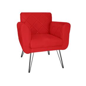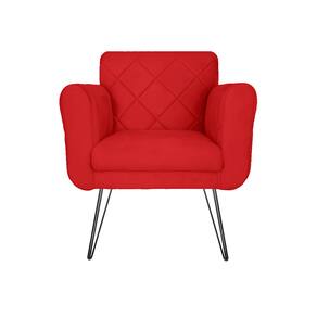 Conjunto 2 Poltronas Estofadas Para Consultório Pés de Ferro Isabella Corano Vermelho - LM DECOR