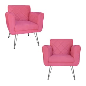 Conjunto 2 Poltronas Estofadas Para Consultório Pés de Ferro Isabella Suede Rosa Barbie - LM DECOR