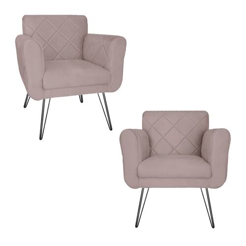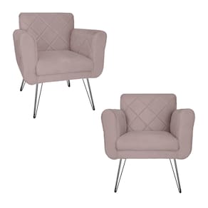 Conjunto 2 Poltronas Estofadas Para Consultório Pés de Ferro Isabella Suede Rose - LM DECOR - Rosê