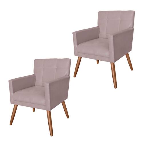 Conjunto 2 Poltronas Estofadas Pés Palito Sala de Visitas Onix Suede Rose - LM DECOR - Rosê