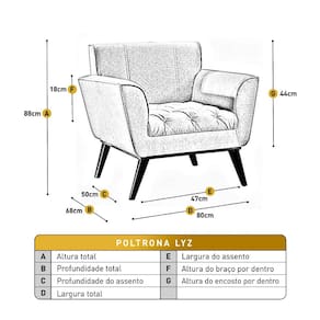 Características: Poltrona Marca: Castellar Móbile Modelo: Lyz Espuma: D26 SOFT Material da Base: Madeira Maciça Tecido da Poltrona: Material Sintético