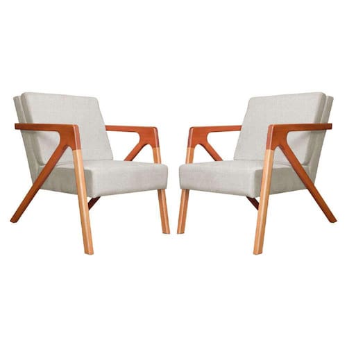 Conjunto 2 Poltronas Monalisa Com Braços de Madeira Corano Bege - LM DECOR