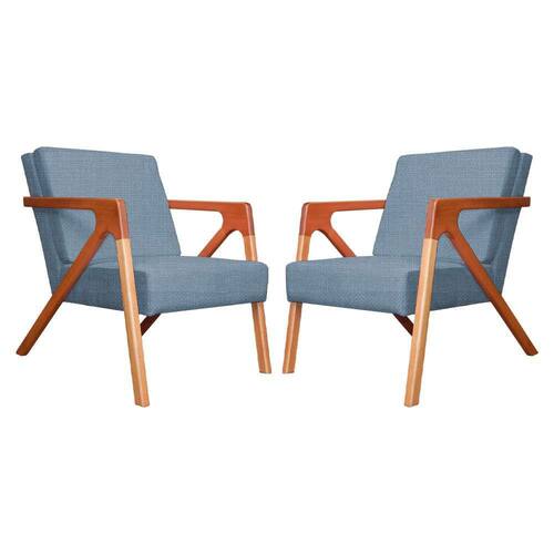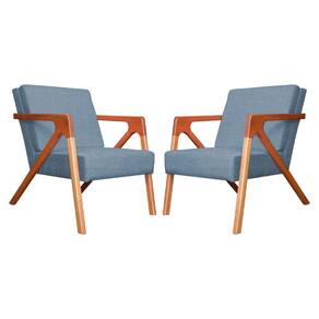 Conjunto 2 Poltronas Monalisa Com Braços de Madeira Linho Azul - LM DECOR - Azul Petróleo