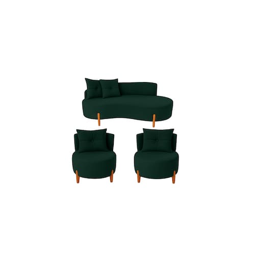 Conjunto 2 Poltronas + Sofá Curvo Orgânico Veludo Verde - Montanaris Decor
