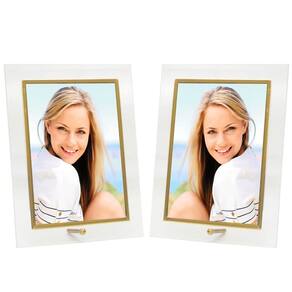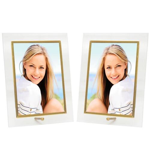 -02 Unidades Porta-Retrato Vidro Reto Prime Filete Dourado 10x15 Vertical – Tuut