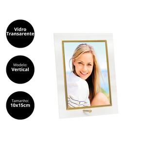 Kit 2 Porta-Retratos Vidro Reto Borda Dourada 10x15 Vertical