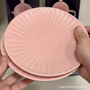 Conjunto 2 Pratos de Cerâmica para Sobremesa Colibri Rosa 19cm 17999 - Wolff - Dorémi Casa e Decor