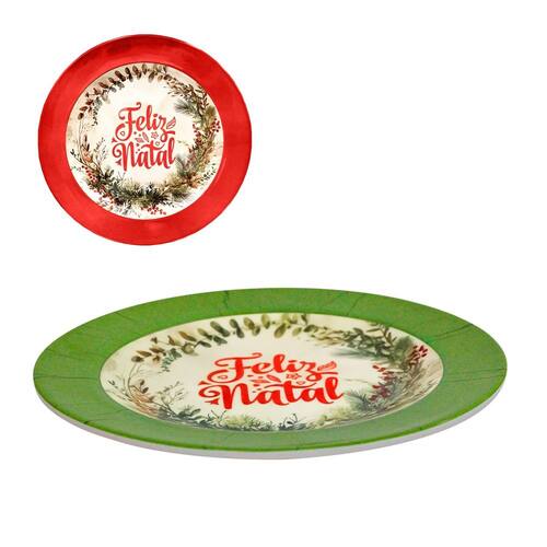 Encante sua ceia com charme e praticidade! O prato para sobremesa com tema natalino é perfeito para servir aperitivos, frutas, frios ou doces com um toque especial de Natal. Fabricado em melamina, material resistente e leve, ele é ideal para usar tanto em ambientes internos quanto em áreas externas, como varandas e jardins.Prato "Feliz Natal” com guirlanda de folhagens e com borda em verde ou vermelho vibrante.Dimensões: 17,5 cm de diâmetroMaterial: Melamina (não vai ao micro-ondas)Fácil de limpar e altamente durávelIdeal para festas, jantares e confraternizações natalinasLeve mais alegria e beleza à sua mesa com essa peça indispensável para o Natal!Itens Inclusos:2 Pratos em melamina 17,5cm Marca: Não Informado