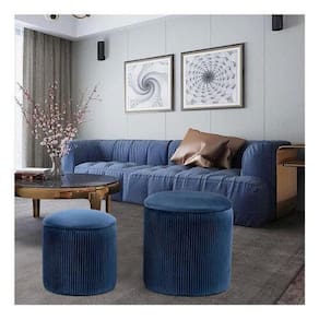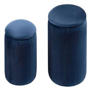 Dimensões: Puff menor: 36 cm de altura e 35 cm de diâmetro. Puff maior: 44 cm de altura e 42 cm de diâmetro. Material: Estrutura robusta revestida em tecido azul de alta qualidade. Capacidade de Peso: Cada puff suporta até 100 kg. Cor: Azul, trazendo uma sensação de tranquilidade e sofisticação ao ambiente. Funcionalidades: