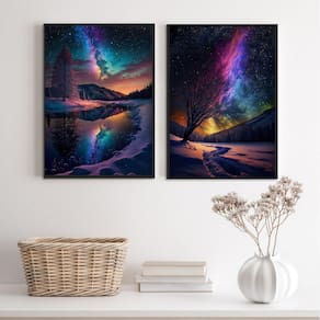 Conjunto 2 quadros decorativos aurora boreal 24x18cm - com vidro Moldura: madeira branca Informações do produto tire todas as suas dúvidas no descritivo abaixo: decoração para quarto, sala, cozinha, escritório, área gourmet e muito mais. Chega de paredes vazias medidas - cada peça tem 24x18cm a5 . Material do papel - papel fotográfico brilhante de altíssima resolução acabamento - todos os quadros são acompanhados de vidro para proteção da imagem. - moldura em madeira maciça na cor preta ou branca conforme produto escolhido e pendurador . - os quadros são embalados de forma segura com plástico bolha com camada dupla de acordo com o tamanho dos quadros. Garantia - garantia de 3 meses. Meu quadro chegou. Como posso fixá-lo Você precisa apenas de um martelo e um prego, pois os quadros já vão acompanhados de penduradores. Esta é a forma mais indicada. Como posso limpar meu quadro A limpeza é feita como um móvel comum da sua casa. Apenas um pano seco ou espanador são suficientes para tal Ean: 7890363821359