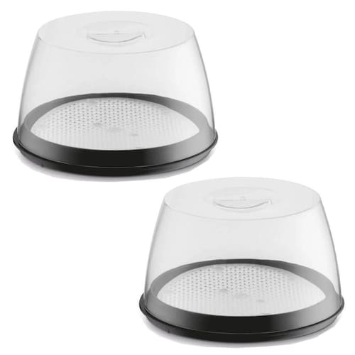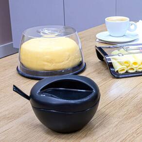 Conjunto 2 Queijeiras com Tampa Pretas Porta Queijo Frios Plástico com Grade Interna Uz.