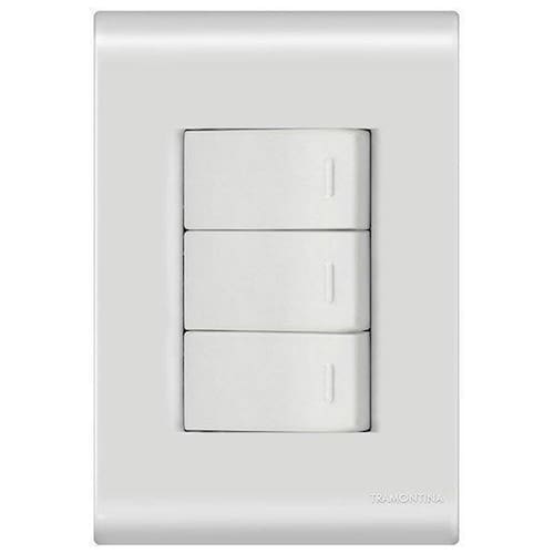 Interruptores e tomadas - tramontina liz branca conjunto completo com: 2 módulos de interruptor simples 1 módulo de interruptor 1 placa para 3 módulos 4x2 1 suporte 4x2 2 parafusos os itens acima são enviados desmontados, para montar é fácil, só encaixar. Marca de conformidade de produtos certificados.