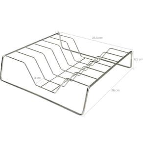 Garantia: 90 Dias / Peso: 600g / Cor: Cromado / Ref: 311X2 Dimensões de cada organizador: 27cm (C) x 25cm (L) x 6cm (A) Largura de cada compartimento: 3cm Capacidade de cada organizador: 06 Tampas.