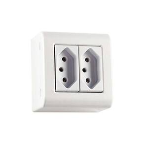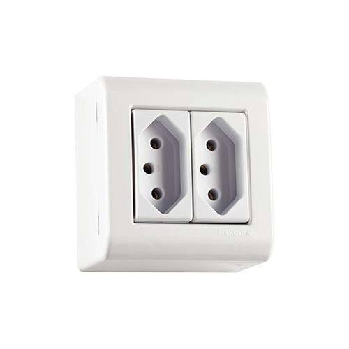 - Marca: Tramontina Universo do Lar - Modelo: Linha Lizflex - Tipo: Tomadas 10A - Quantidade: 2 tomadas - Material: Plástico e metal - Cor: Branco - Voltagem: Bivolt - Potência máxima: 1270W em 127V / 2200W em 220V