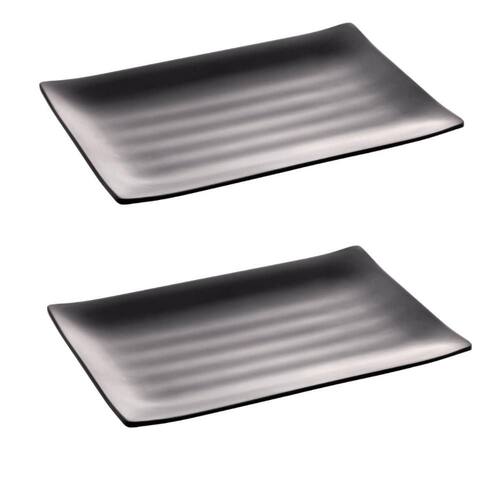 Conjunto 2 Travessas Retangulares 24,5x16,5cm de Melamina Preto Lyor Comida Japonesa.