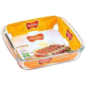 Conjunto 2 Un Assadeiras Marinex Resistentes Brand NADIR Marca NADIR As assadeiras Marinex podem ser usadas para assar, preparar, servir alimentos prontos.É ideal em fornos convencionais, de micro-ondas, lava-louças e freezer. produzido em vidro; 100% reciclável; higiênico e fácil de limpar.Especificações:marca: NadirMaterial: VidroItem 1- 1 Un. Assadeira retangular 3,5L- Dimensões AxLxC : 6950 x 22950 x 37100- Peso: 1560Item 2 - 1 Un. Assadeira Quadrada 1,1L- Dimensões AxLxC : 5000 x 18200 x 20500- Peso: 640 Marca: Não Informado