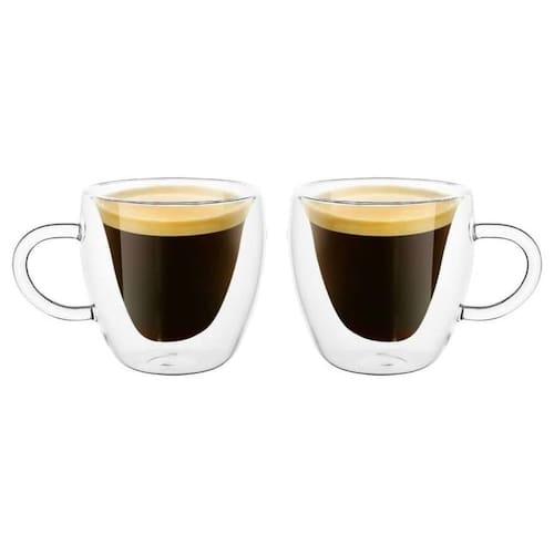 Jogo 2 Xícaras Café Parede Dupla Vidro Borossilicato 80ml
